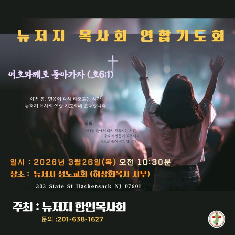 뉴저지한인목사회 연합 기도회 작성자 정보 뉴저지한인목사회 작성 작성일 2026.02.16 15:42 컨텐츠 정보 목록 본문 . SNS 공유 관련자료 댓글 0 등록된 댓글이 없습니다. 로그인한 회원만 댓글 등록이 가능합니다. 목록