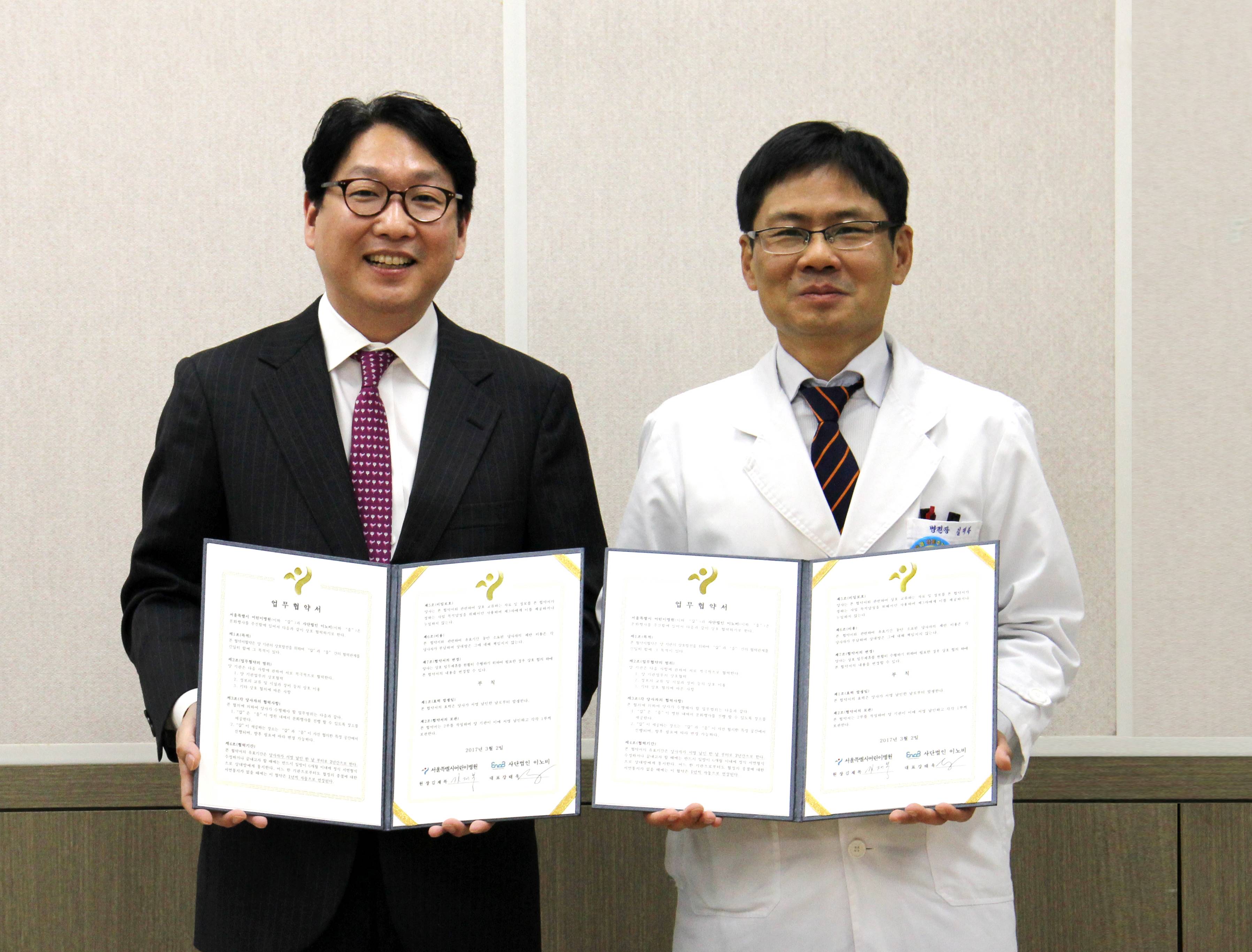 3 11 금요일 오후 , 서울아산병원 암병원의 유창식 원장과 이노비 강태욱 대표가 서울아산병원에서 MOU(상호양해각서) 체결하였다.