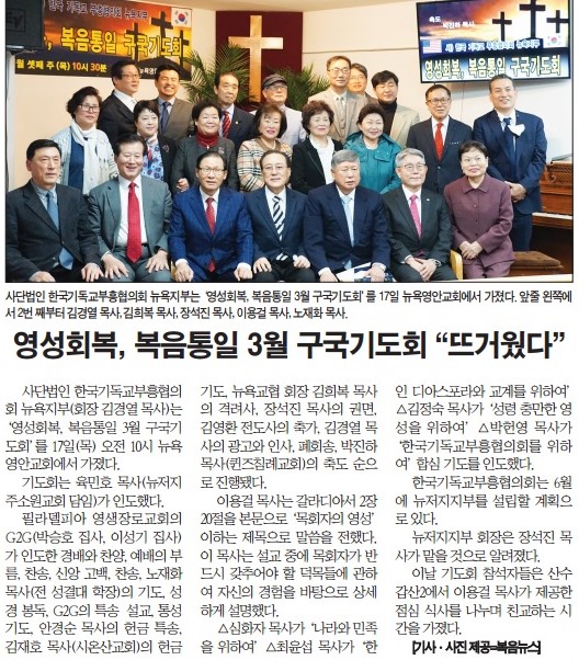 복음뉴스 제공 2022년 3월 25일(금) 자 뉴욕일보 A2면 기사