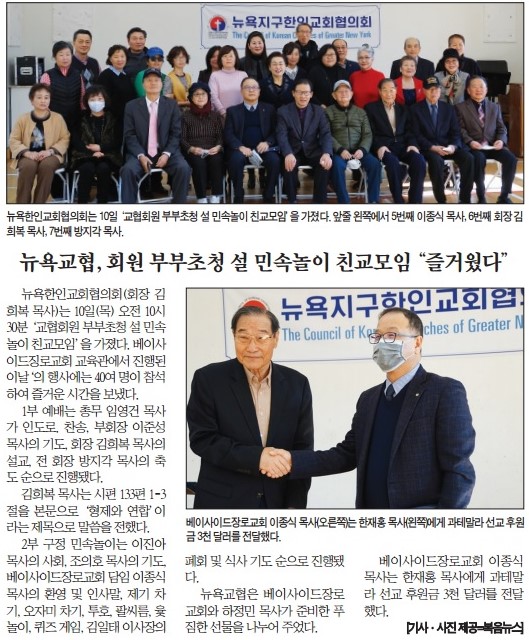 뉴욕교협, 회원 부부 초청 설 민속놀이 친교 모임 "즐거웠다"