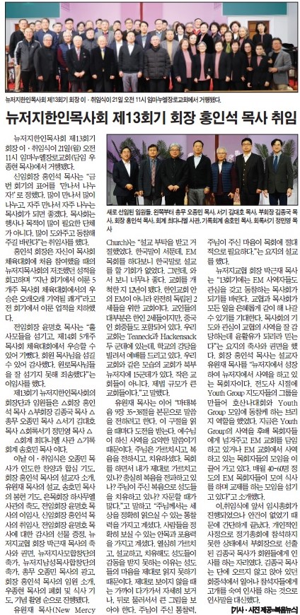 뉴저지한인목사회 제13회기 회장 홍인석 목사 취임