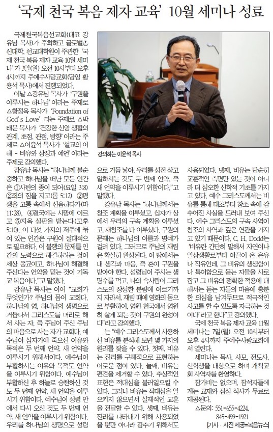 '국제 천국 복음 제자 교육' 10월 세미나 성료
