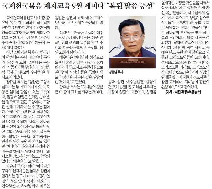 국제천국복음 제자교육 9월 세미나 '복된 말씀 풍성'