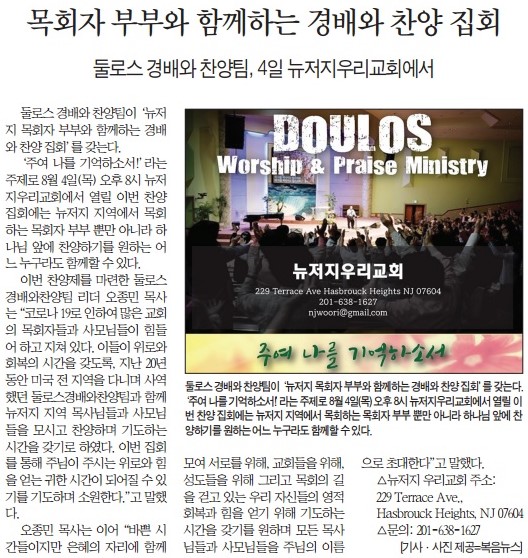 복음뉴스 제공 2022년 7월 25일(월) 자 뉴욕일보 A4면 기사