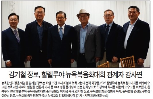 복음뉴스 제공 2022년 8월 19일(토) 자 뉴욕일보 A2면 기사