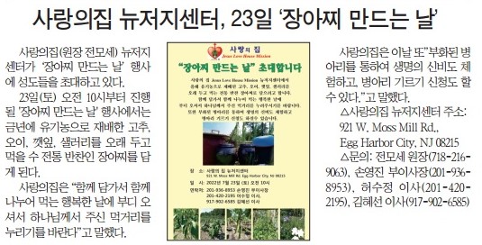 사랑의집 뉴저지센터, 23일 '장아찌 만드는 날'