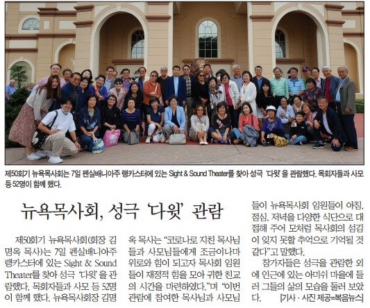 복음뉴스 제공 2022년 6월 13일(월) 자 뉴욕일보 A4면 기사