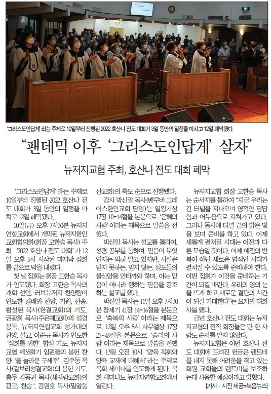 복음뉴스 제공 2022년 6월 13일(월) 자 뉴욕일보 A3면 기사