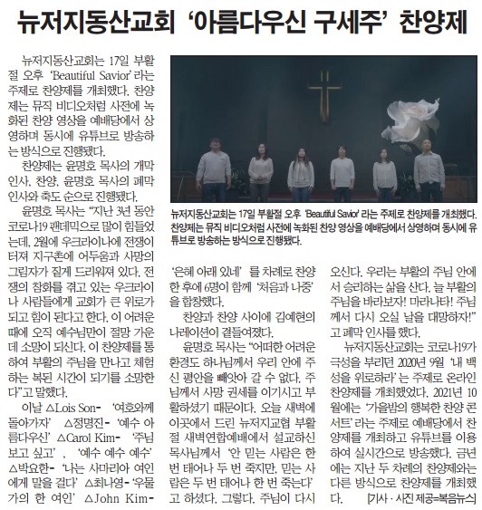 뉴저지동산교회 - 'Beautiful Savior' 주제로 부활주일 찬양제 연다