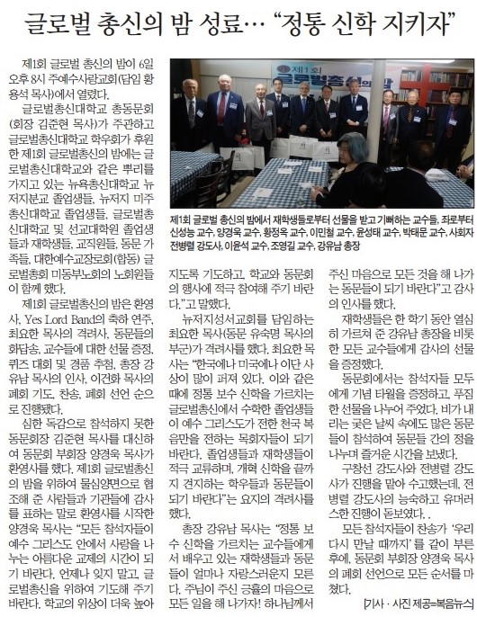 글로벌 총신의 밤 성료 --- "정통 신학 지키자"