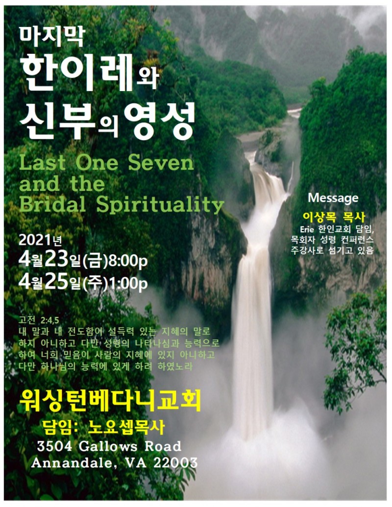 장소: 워싱턴베다니교회 (담임 노요셉목사)