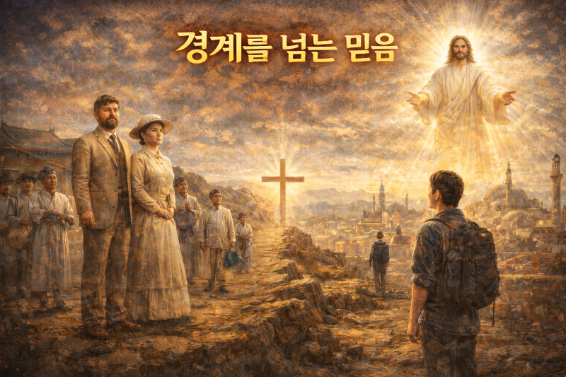 복음은 언제나 경계를 넘는 사람들을 통해 확장되어 왔다. 설교자는 ‘프론티어(Frontier)’라는 개념을 통해 아무도 가보지 않은 믿음의 길을 걸어간 선교사들의 이야기를 소개하며, 예수 그리스도를 따르는 삶이 바로 그런 경계를 넘어서는 삶이라고 강조했다. 언더우드와 맥파랜드 선교사의 헌신을 통해 복음이 한국 땅에 전해졌듯이, 오늘의 교회 역시 복음의 경계를 넘어가는 믿음의 프론티어로 살아가야 한다는 도전을 전했다.