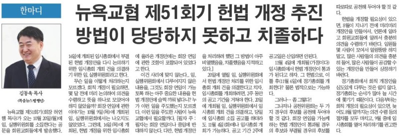 한마디 - 뉴욕교협 제51회기 헌법 개정 추진 방법이 당당하지 못하고 치졸하다