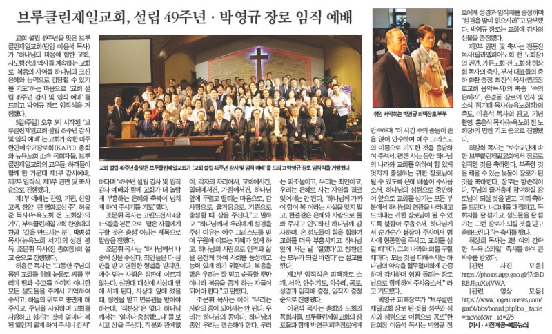 부르클린제일교회, 설립 49주년 및 박영규 장로 임직 예배