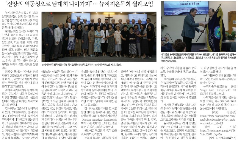 "신앙의 역동성으로 담대히 나아가자" --- 뉴저지은목회 월례모임