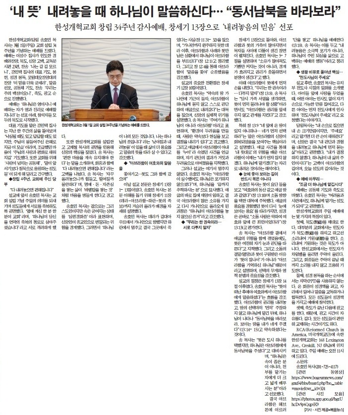 '내 뜻' 내려놓을 때 하나님이 말씀하신다 --- "동서남북을 바라보라" 작성자 정보 복음뉴스 작성 작성일 2026.03.05 05:56 컨텐츠 정보 목록 본문 복음뉴스 제공 2026년 3월 5일(목) 자 뉴욕일보 A4면 기사 SNS 공유 관련자료 댓글 0 등록된 댓글이 없습니다. 로그인한 회원만 댓글 등록이 가능합니다. 목록