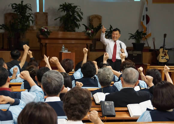 “전도현장이 어디냐 하면 내가 있는 바로 이곳이다. 대한항공 타고 뉴욕에 오면서 옆에 앉아있던 분이 허리가 아프다고 했다. 몸이 아플 때 좋은 전도의 기회이다. 집회 가는 교회 장로라고 소개하고 기도하면서 복음을 제시하고 예수님을 영접시켰다. 그러자 스튜어디스도 기도해달라고 했다.”