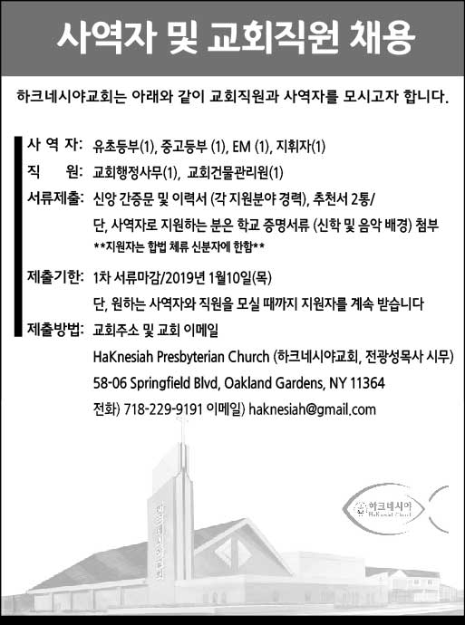 LA 풍성한 교회에서 행정담당 사역자를 모십니다