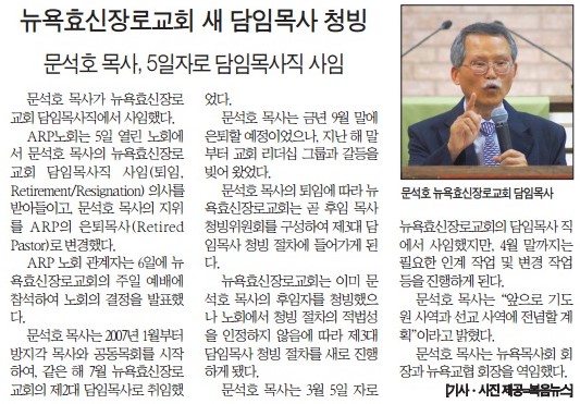 728 "현 뉴욕교협 회장 사퇴하고 회장, 부회장 새로 선출해야 한다" 복음뉴스 2023.01.07