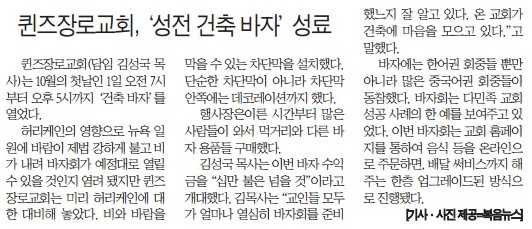복음뉴스 제공 2022년 10월 3일(월) 자 뉴욕일보 A2면 기사