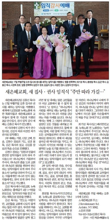 복음뉴스 제공 2022년 4월 21일(목) 자 뉴욕일보 A4면 기사
