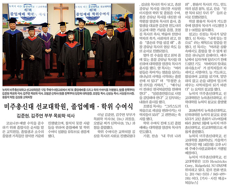미주총신대 선교대학원, 졸업예배 학위수여식