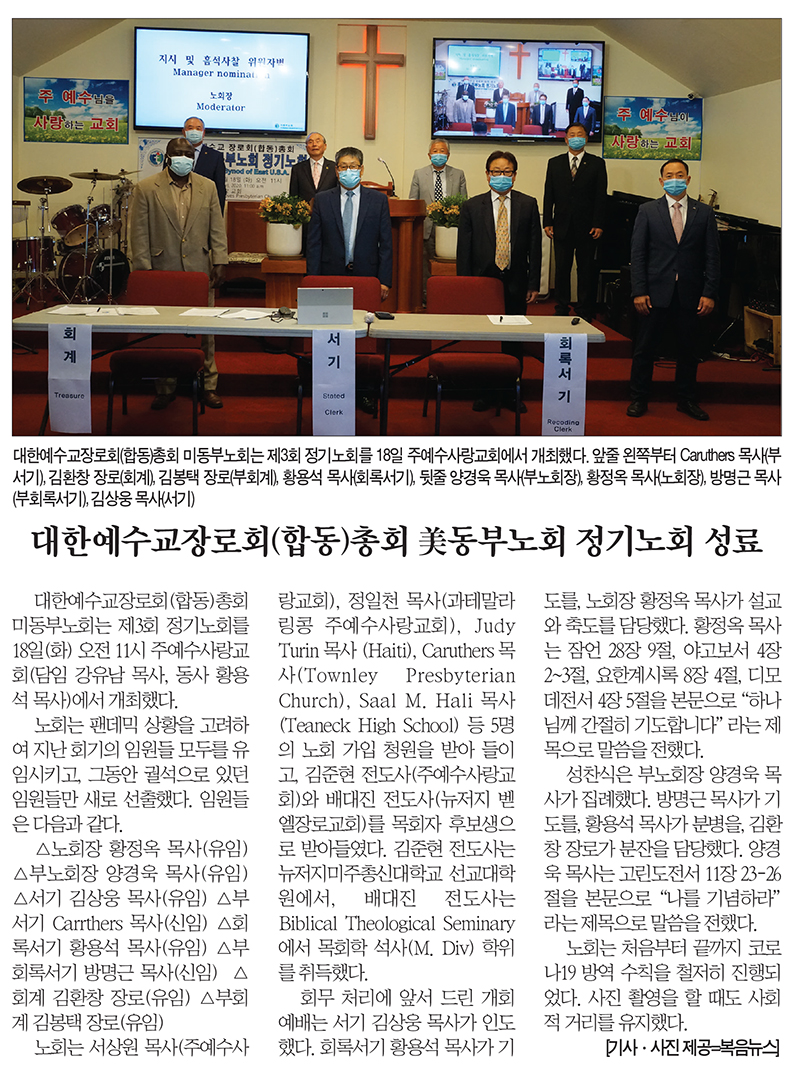 대한예수교장로회(합동)총회 미동부노회 정기노회 성료