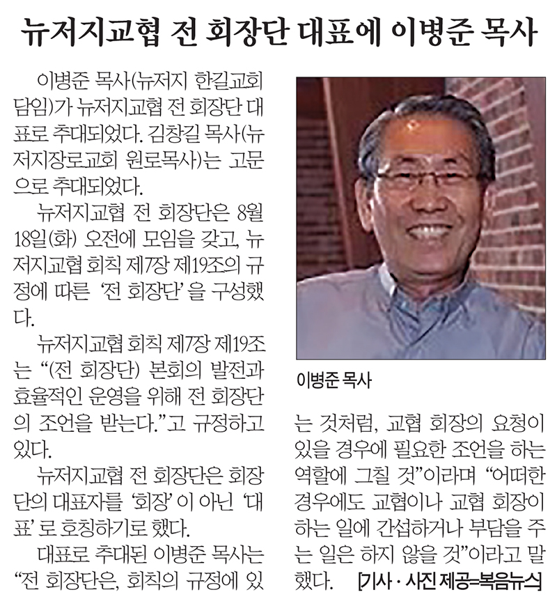 뉴저지교협 전 회장단 대표에 이병준 목사