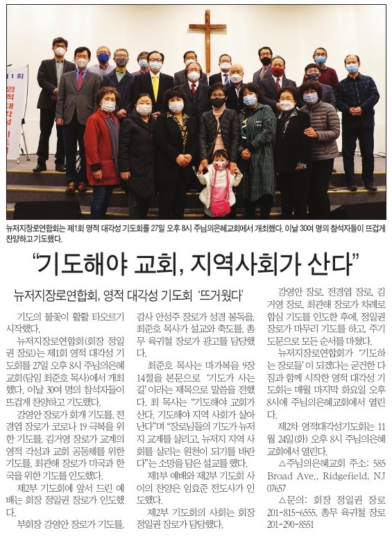 복음뉴스 제공 2020년 10월 30일(금) 자 뉴욕일보 A3면 기사