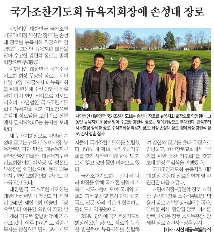 국가조찬기도회 뉴욕지회장에 손성대 장로