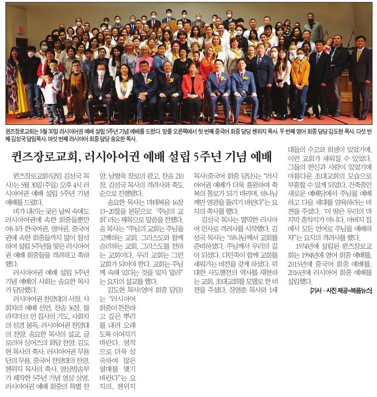 퀸즈장로교회, 러시아어권 예배 설립 5주년 기념 예배