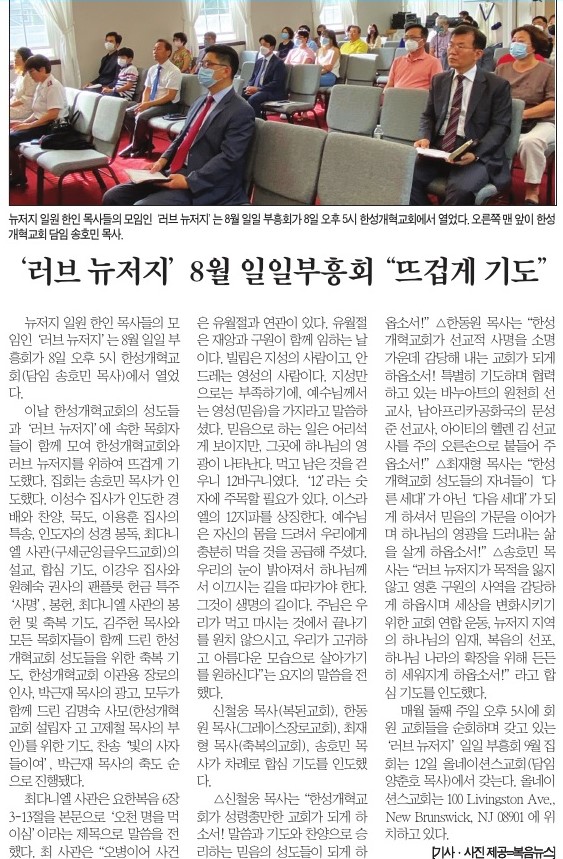 '러브 뉴저지' 8월 일일 부흥회 "뜨겁게 기도"