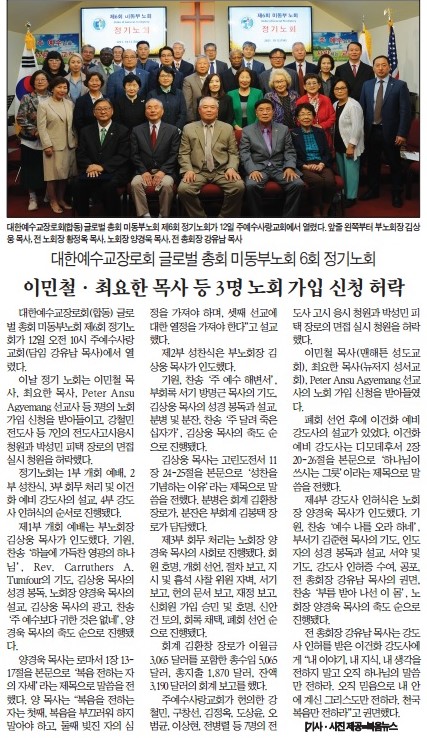 이민철, 최요한 목사 등 3명 노회 가입 신청 허락