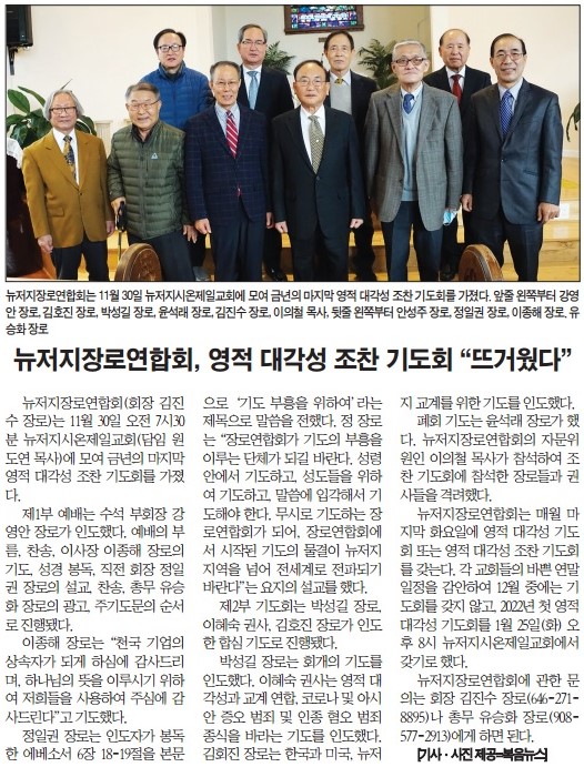 복음뉴스 제공 2021년 12월 3일(금) 자 뉴욕일보 A2면 기사
