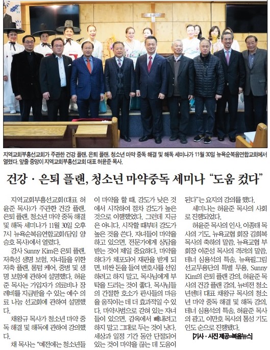 건강 / 은퇴 플랜, 청소년 마약 중독 세미나 "도움 컸다"