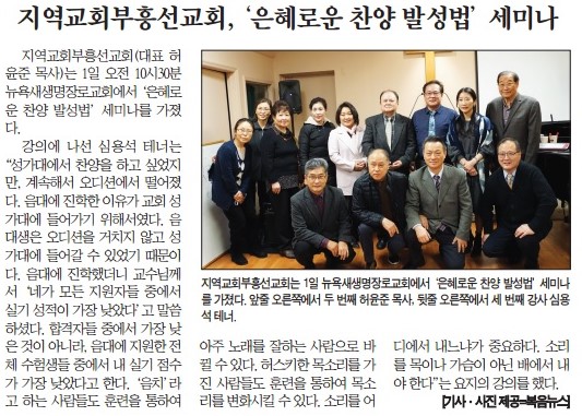 지역교회부응선교회, '은혜로운 찬양 발성법' 세미나