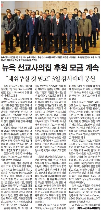 복음뉴스 제공 2021년 12월 7일(화) 자 뉴욕일보 A2면 기사