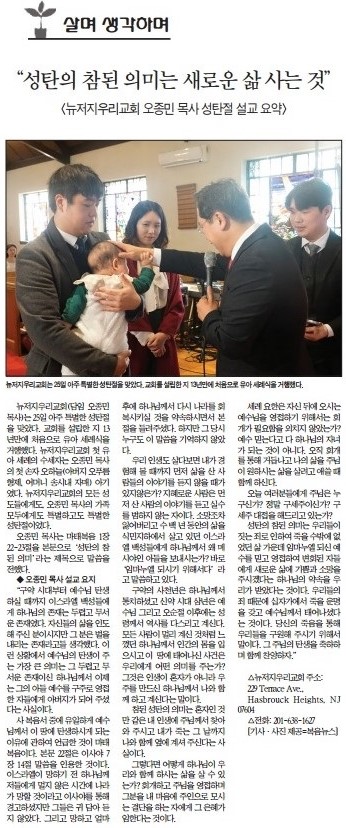 "성탄의 참된 의미는 새로운 삶 사는 것" - 뉴저지우리교회 오종민 목사 성탄절 설교 요약