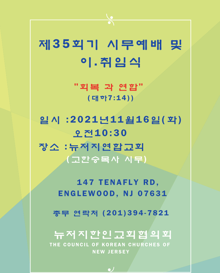 뉴저지교협 제35회기 시무예배 및 이,취임식