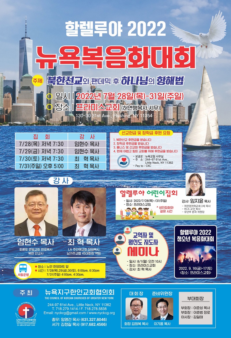 [관련 기사] 제1차 준비 기도회 ------ 할렐루야대회 - 7월 28일(목)부터 31일(주일)까지, 강사는 임현수 목사와 최혁 목사 ===> https://www.bogeumnews.com/gnu5/bbs/board.php?bo_table=topnews&wr_id=1319