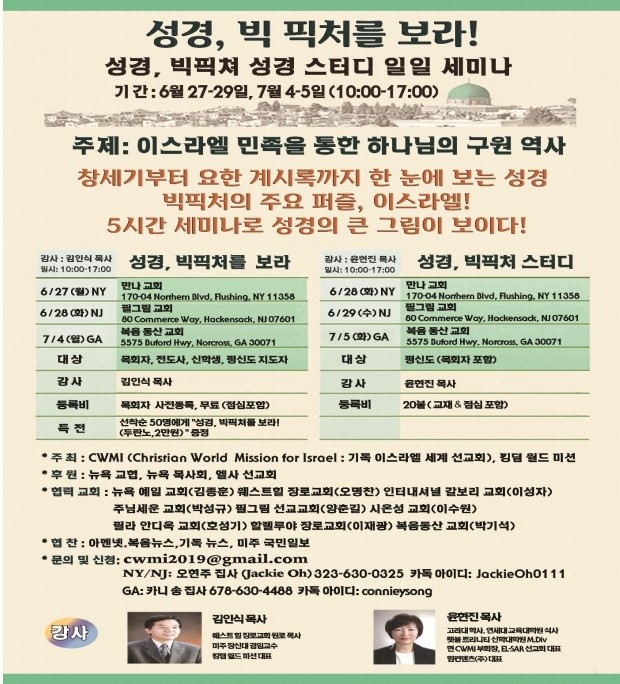 "성경, 빅 픽처를 보라!" 뉴욕, 뉴저지, 아틀란타 일일 세미나 안내