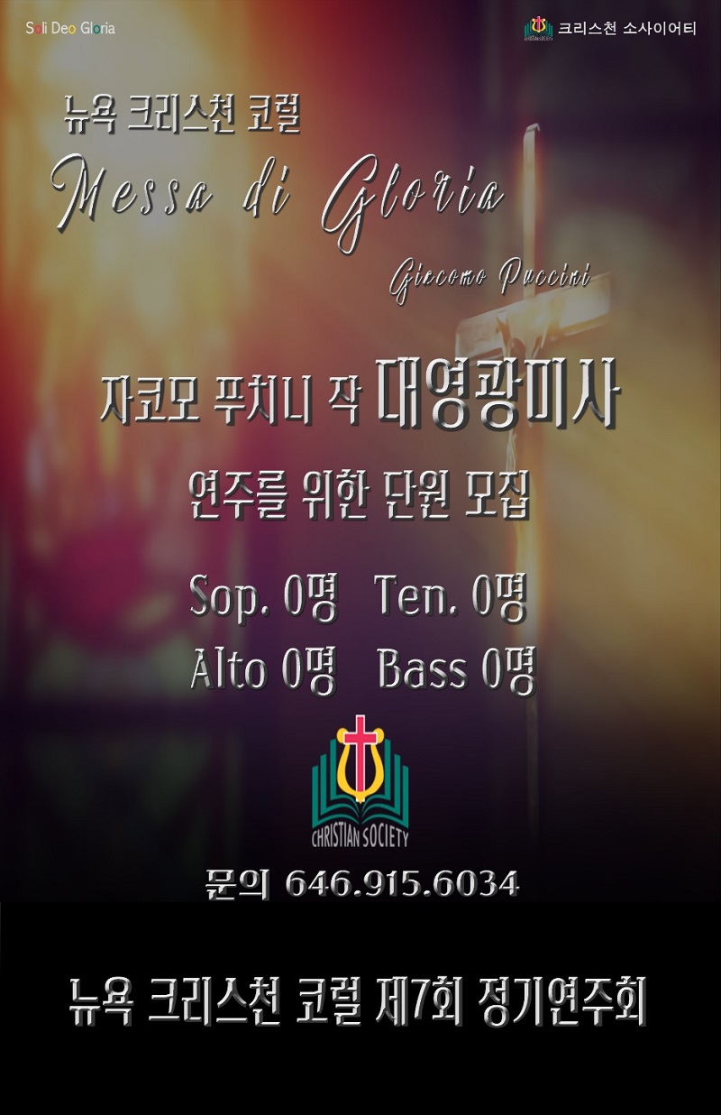 자코모 푸치니 작 대영광 미사 연주를 위한 단원 모집