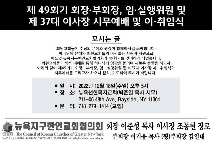 뉴욕교협 제49회기 회장, 부회장, 임,실행위원 및 제37대 이사장 시무예배 및 이,취임식