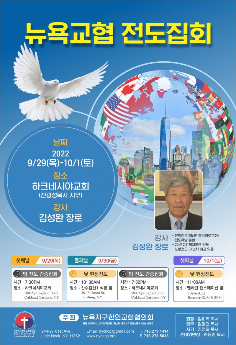 뉴욕교협 제49회기 회장, 부회장 및 감사 입후보 등록 접수 공고