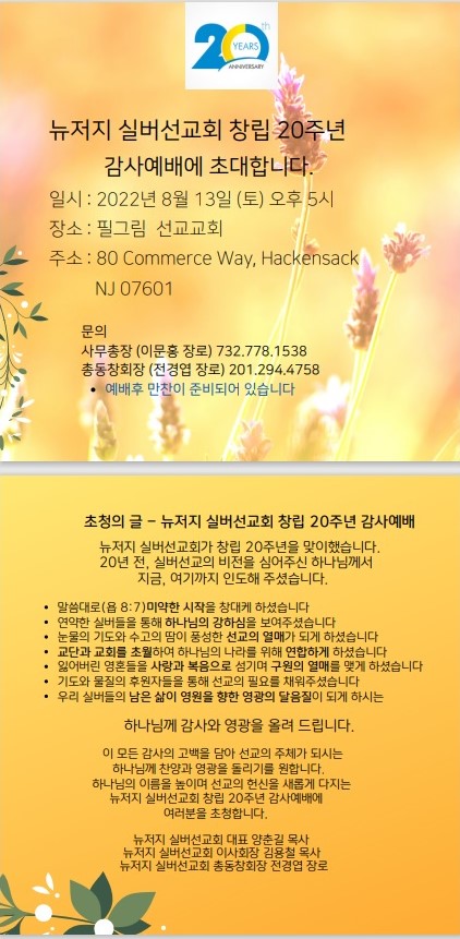 뉴저지 목회자 부부와 함께하는 경배와 찬양 집회