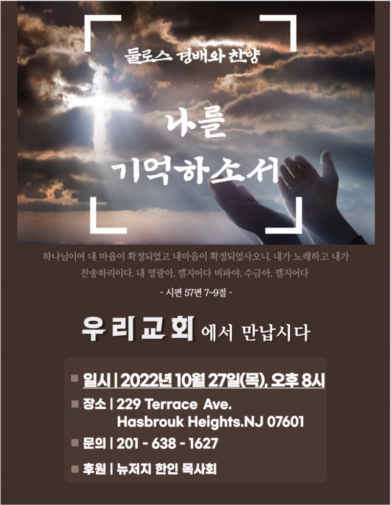 뉴욕카페교회에서 찬양예배가 신설됩니다.