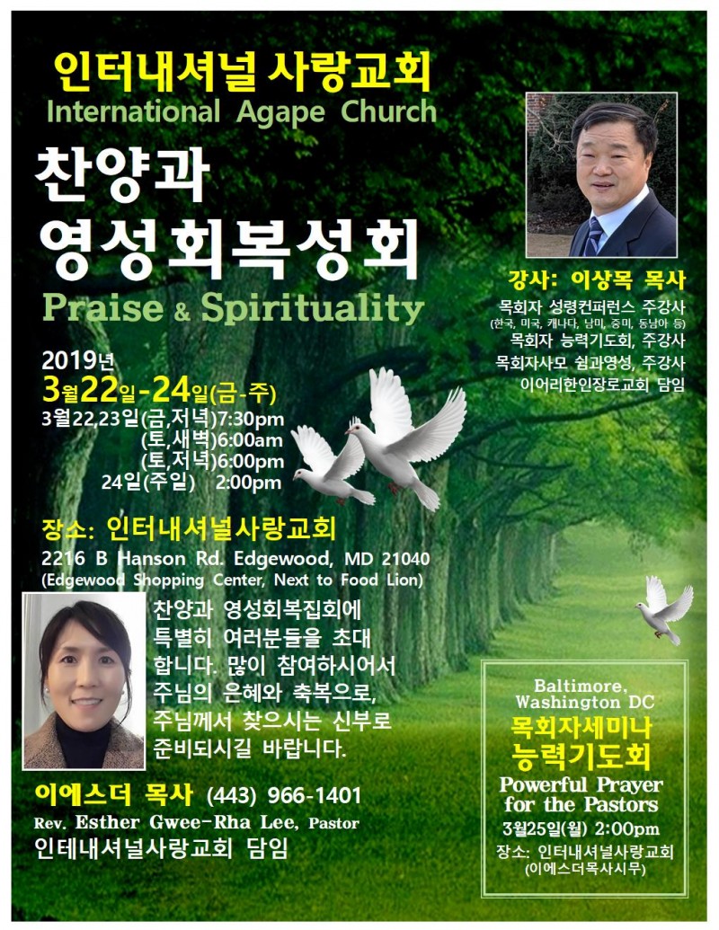 인터내셔널사랑교회 이에스더목사- 찬양과 영성회복성회 개최