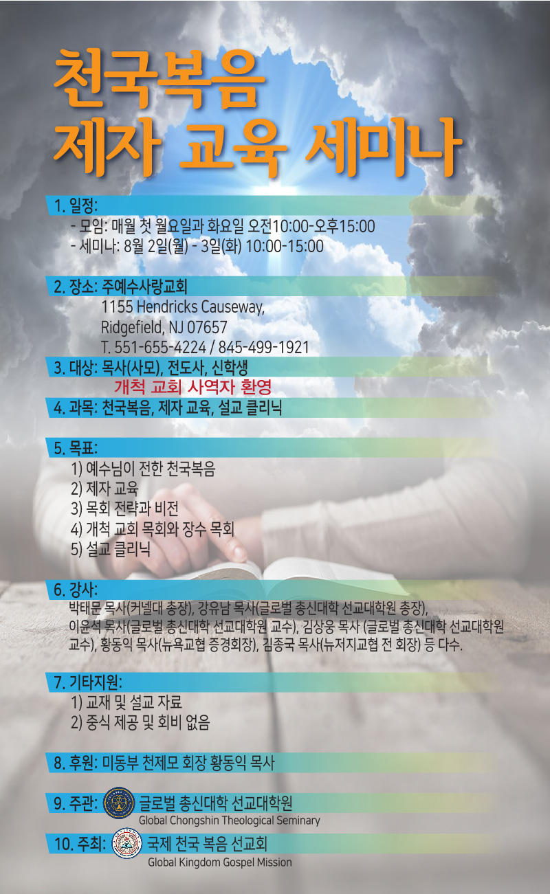 해외한인장로회 뉴욕장로회신학대학(원) 신입생, 편입생 모집
