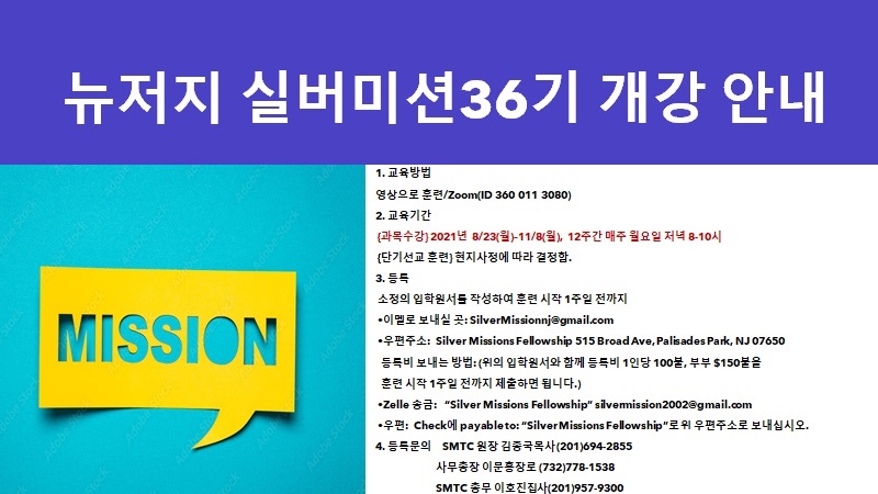 뉴저지실버미션 36기 개강 안내