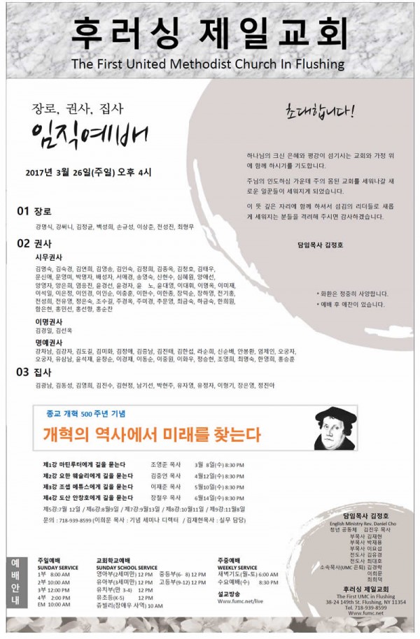 후러싱제일교회 임직식
